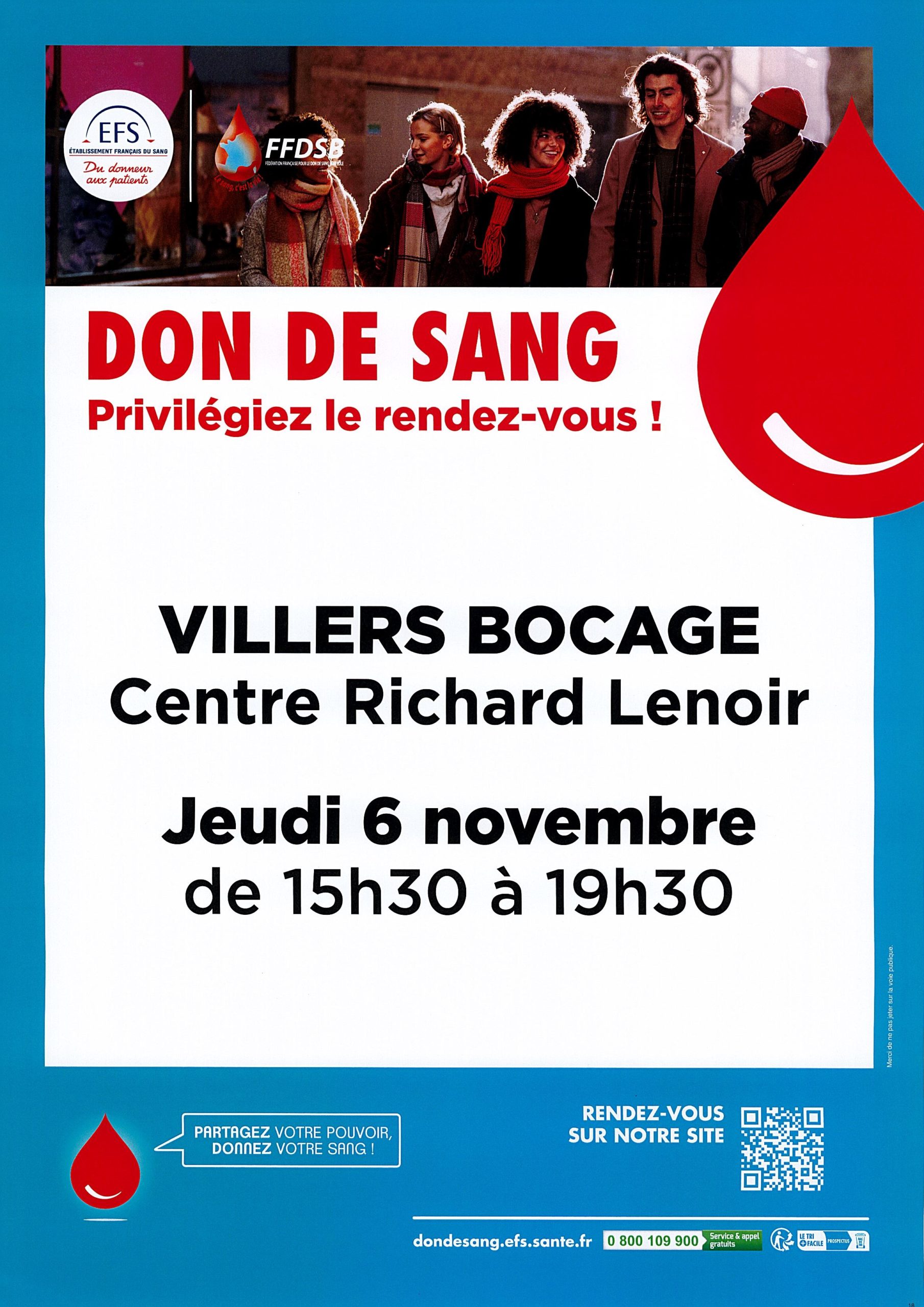 Don de sang le 6 novembre à Villers-Bocage
