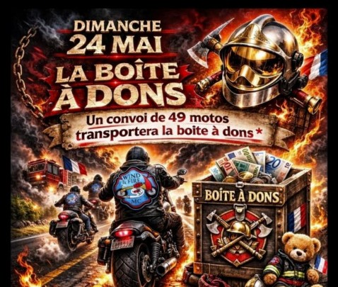 Dimanche 24 mai, venez sur le parcours d’un convoi de 49 motos transportant une boîte à dons en faveur de l’Oeuvre des Pupilles Orphelins de Sapeurs-pompiers de France.