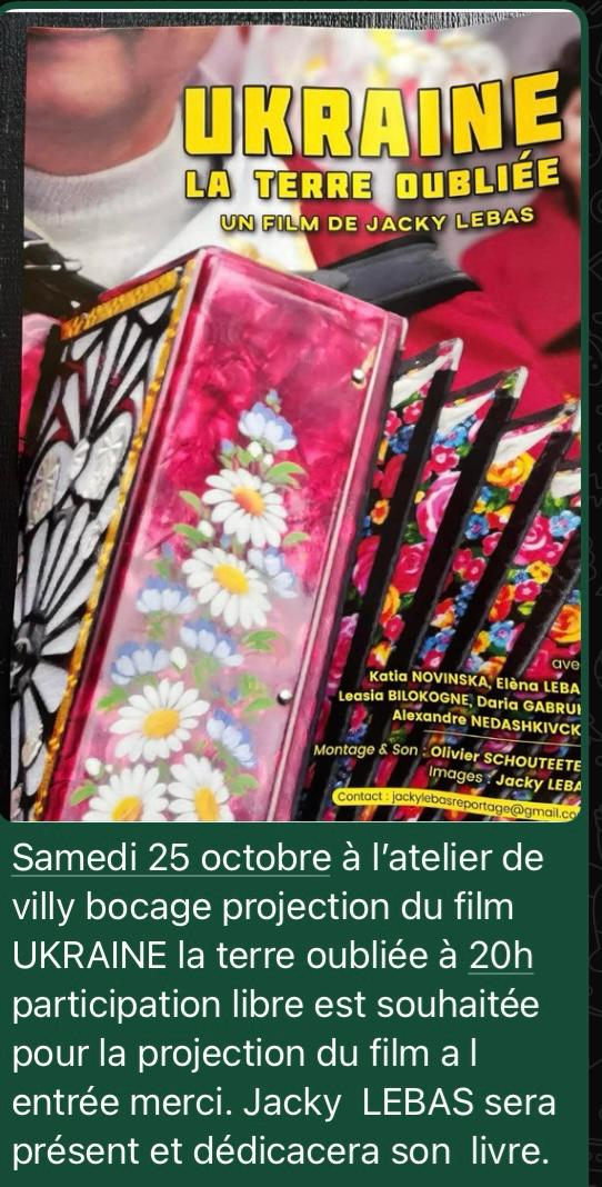 Samedi 25 octobre à 20h à L’Atelier de Villy-Bocage : projection du film UKRAINE, la terre oubliée de Jacky LEBAS.